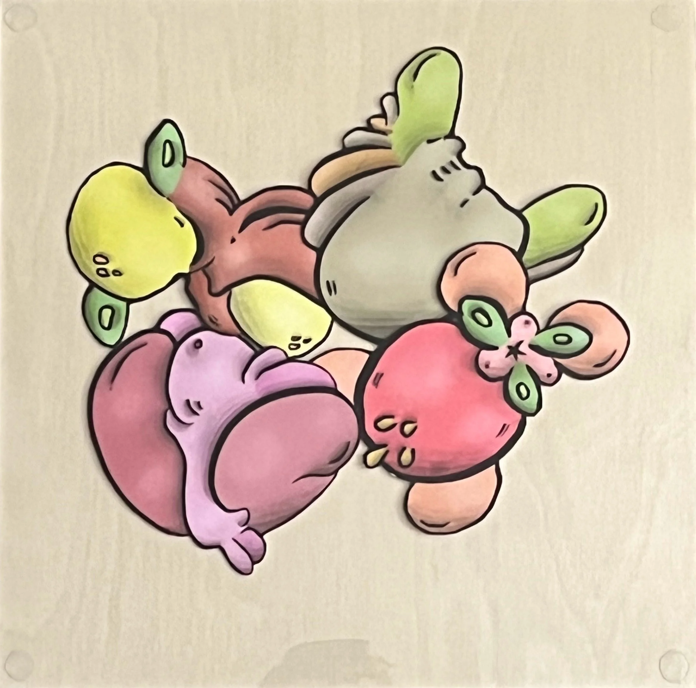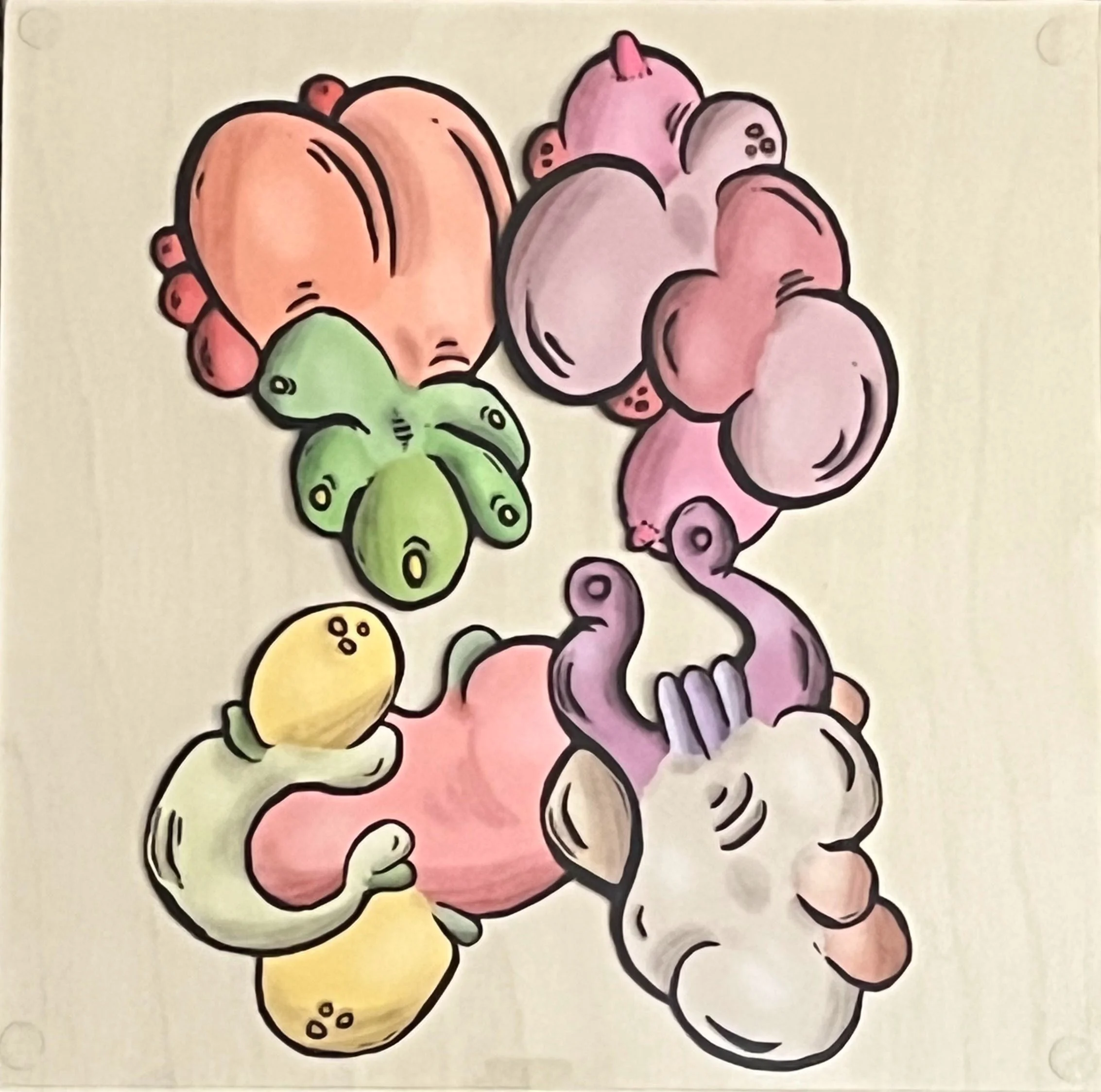 Having already experimented with making my artwork move via micro-servo motors in the Garden series, I chanced upon a method of allowing the spectator direct control of the contents of a painting. Using powerful neodymium magnets controlled by one’s fingers in the back of the frame allows a spectator to rearrange the pieces into unlimited configurations. More interestingly, perhaps, is that the process of moving the pieces around feels intimate and personal. While the spectator is dictating the movement for the most part, the properties of the magnets also contribute a fun unpredictability to the whole affair. I really enjoy interacting with these creations.